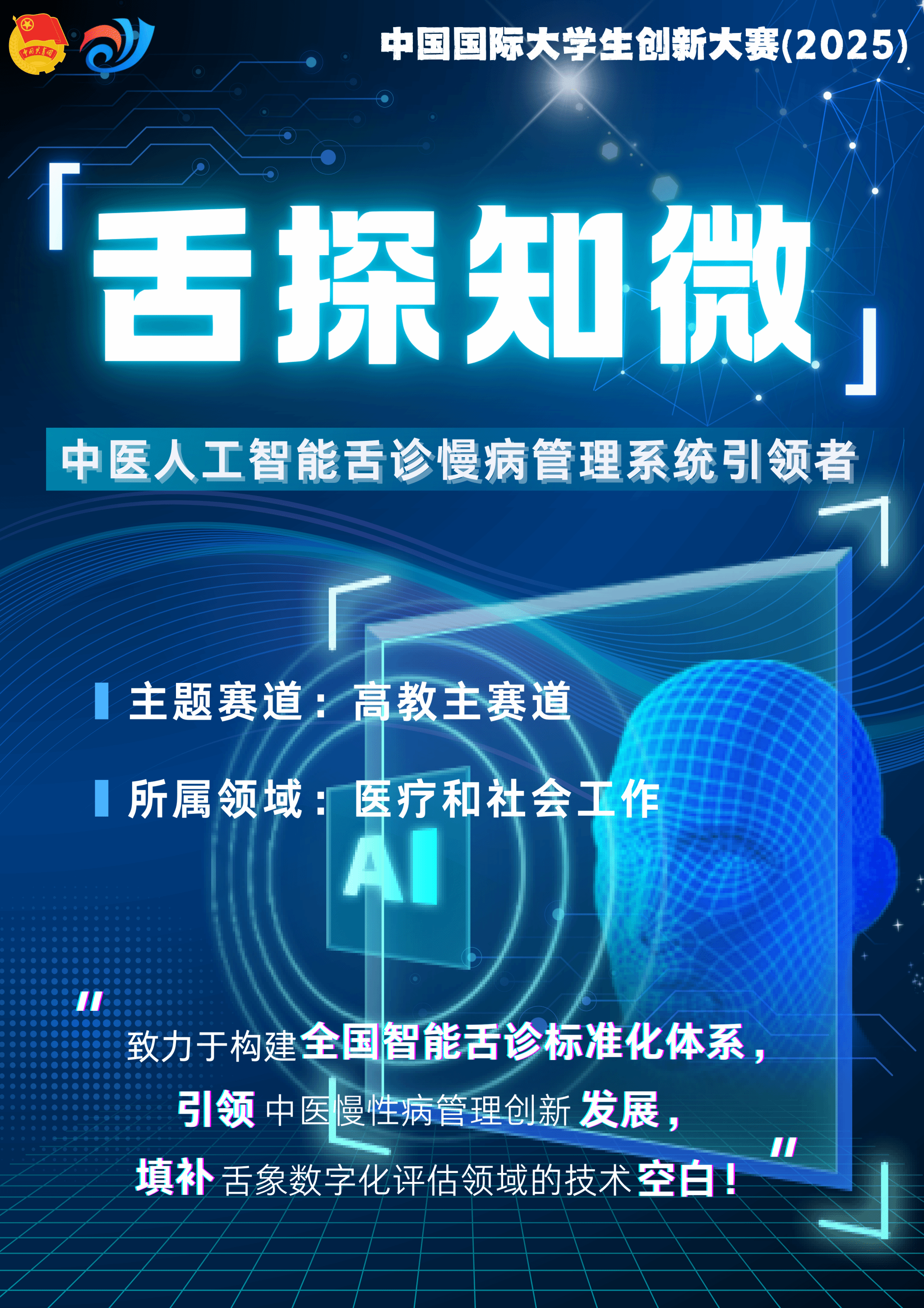 近日,教育部正式公布了中国国际大学生创新大赛(2025)获奖名单,我校第一临床医学院推报项目《舌探知微——中医人工智能舌诊慢病管理系统引领者》荣获国赛铜奖。该项目由周瓒鍖、杜恩何、高董等同学共同参与,指导教师为徐慧、董昌武等。